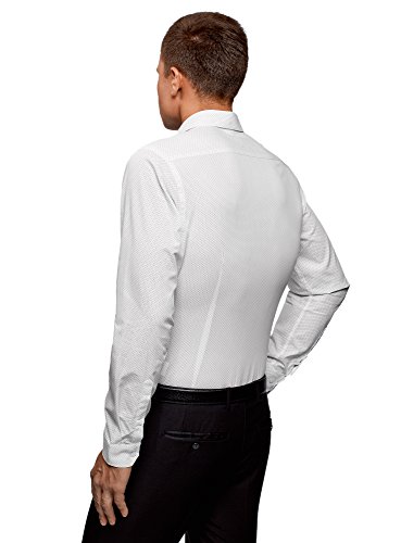 Oodji Ultra Uomo Camicia Aderente a Pois, Bianco, 42