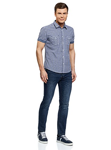 Oodji Ultra Uomo Camicia Aderente a Bottoni a Pressione, Blu, 54