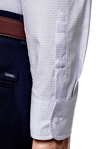 Oodji Ultra Uomo Camicia Aderente Stampa Grafica, Blu, 44-46
