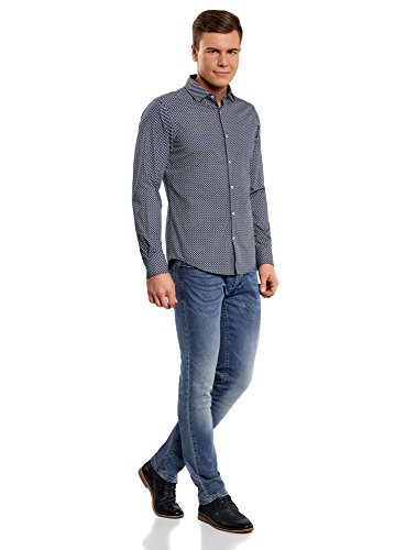 Oodji Ultra Uomo Camicia Aderente Stampata, Blu, 38