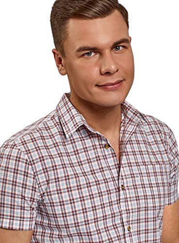 Oodji Ultra Uomo Camicia Avvitata con Maniche Corte, Bianco, 48