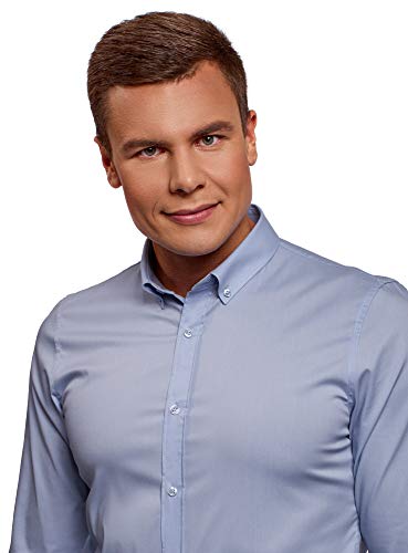 Oodji Ultra Uomo Camicia Basic Slim Fit, Blu, 39