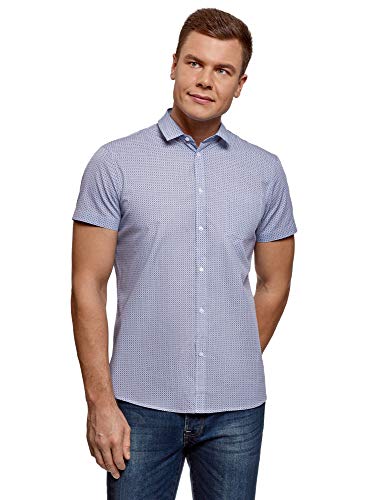 Oodji Ultra Uomo Camicia in Cotone con Maniche Corte, Blu, 39