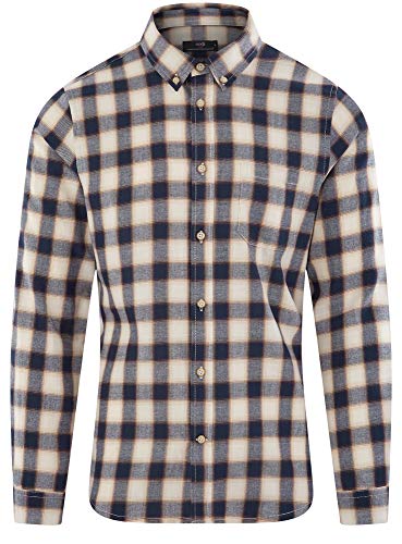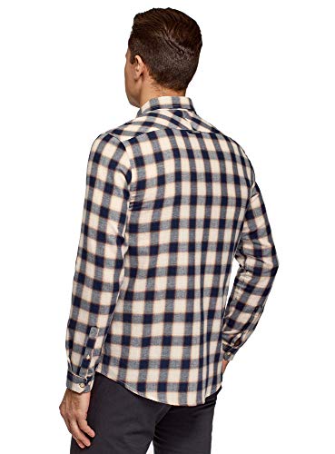 Oodji Ultra Uomo Camicia in Cotone a Quadretti, Bianco, 48
