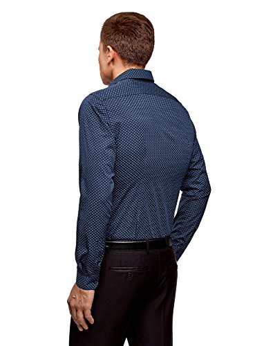 Oodji Ultra Uomo Camicia in Cotone Stampato, Blu, 37