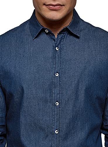 Oodji Ultra Uomo Camicia in Denim con Maniche Lunghe, Blu, 44-46