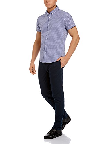 Oodji Ultra Uomo Camicia a Quadretti con Maniche Corte, Bianco, 40