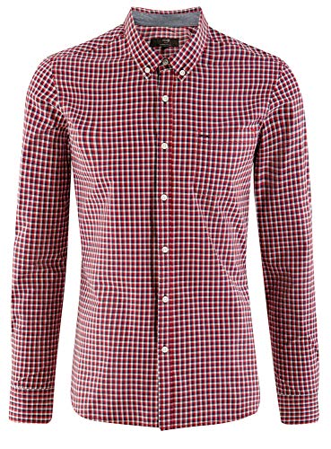 Oodji Ultra Uomo Camicia a Quadretti con Taschino, Rosso, 48