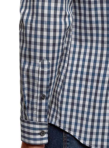 Oodji Ultra Uomo Camicia a Quadri con Maniche Lunghe, Blu, 38