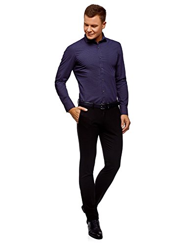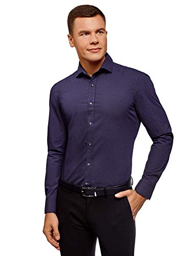 Oodji Ultra Uomo Camicia Stampata Slim Fit, Blu, 50-52