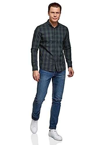 Oodji Ultra Uomo Camicia Stampata con Maniche Lunghe, Blu, 39-40
