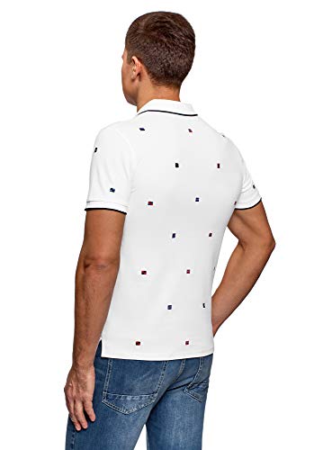Oodji Ultra Uomo Polo in Cotone con Finitura a Contrasto, Bianco, IT 42 / EU 44 / XS