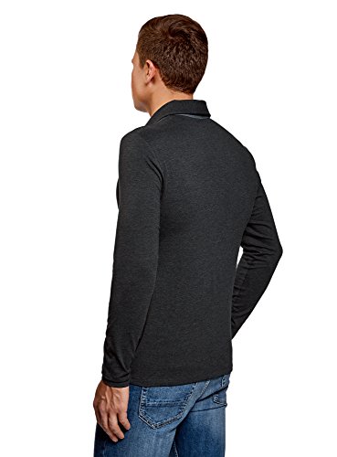 Oodji Ultra Uomo Polo in Cotone con Maniche Lunghe, Grigio, IT 44-46 / EU 46-48 / S