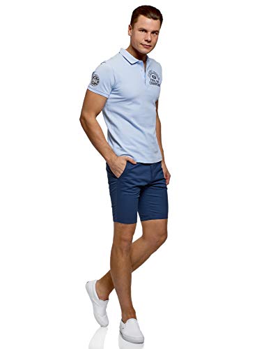 Oodji Ultra Uomo Polo in Cotone con Ricamo, Blu, XS