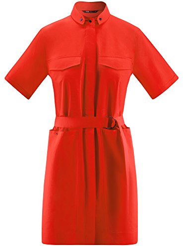 Oodji Ultra Donna Abito Camicia con Tasche, Rosso, IT 38 / EU 34 / XXS