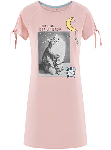 Oodji Ultra Donna Abito da Casa in Cotone con Stampa, Rosa, S