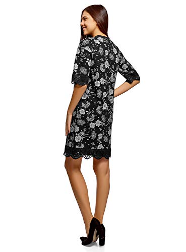 Oodji Ultra Donna Abito Dritto con Pizzo, Nero, IT 38 / EU 34 / XXS