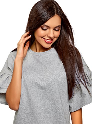 Oodji Ultra Donna Abito Dritto con Volant sulle Maniche, Grigio, IT 44 / EU 40 / M