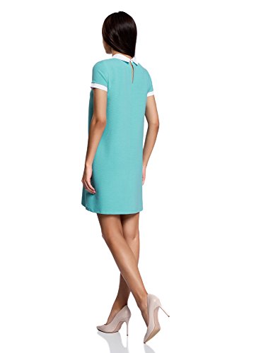 Oodji Ultra Donna Abito Linea ad A con Colletto, Turchese, IT 44 / EU 40 / M