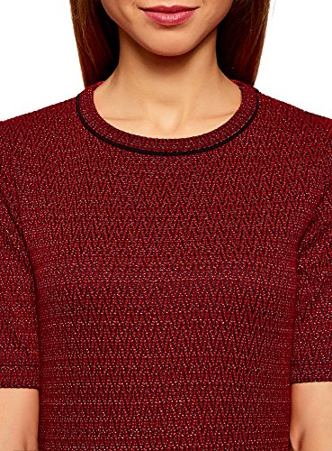 Oodji Ultra Donna Abito in Maglia con Motivo Zig Zag, Rosso, IT 40 / EU 36 / XS