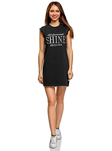Oodji Ultra Donna Abito in Maglia con Ricami, Nero, IT 40 / EU 36 / XS
