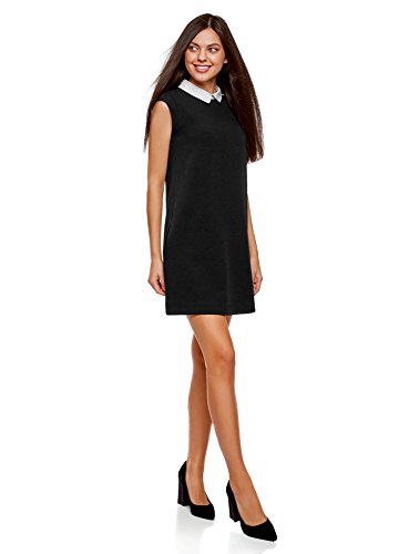 Oodji Ultra Donna Abito Senza Maniche con Colletto, Nero, IT 42 / EU 38 / S