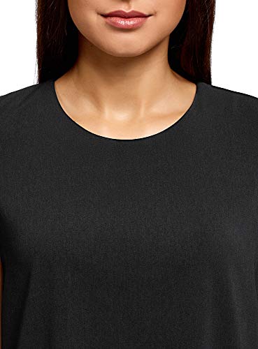 Oodji Ultra Donna Abito Svasato con Inserti in Pizzo, Nero, IT 40 / EU 36 / XS