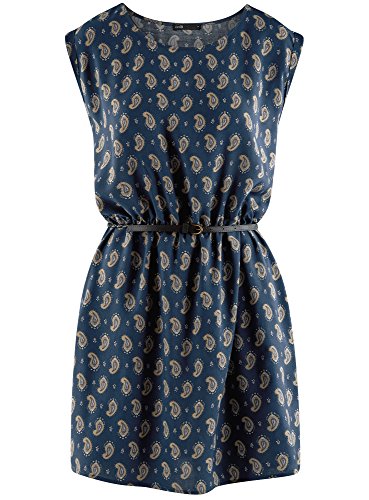 Oodji Ultra Donna Abito in Viscosa con Cintura, Blu, IT 38 / EU 34 / XXS