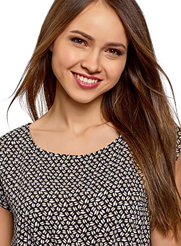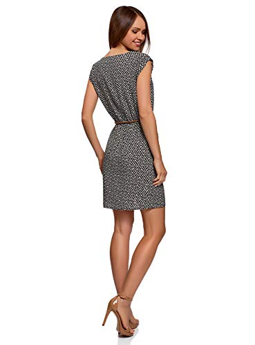 Oodji Ultra Donna Abito in Viscosa con Maniche Corte, Nero, IT 48 / EU 44 / XL
