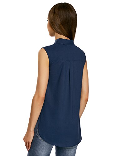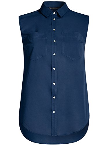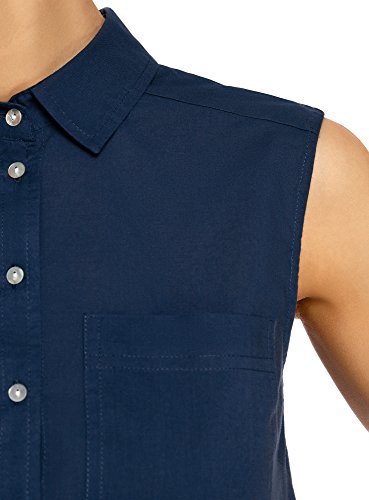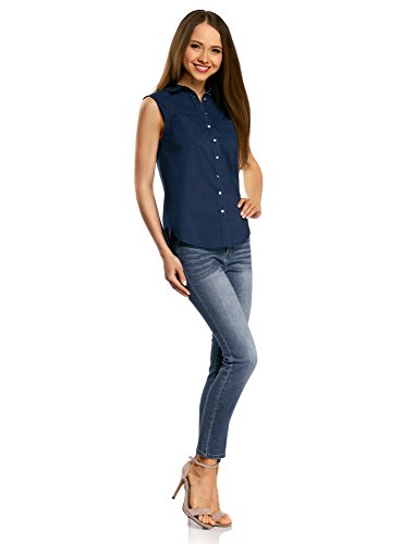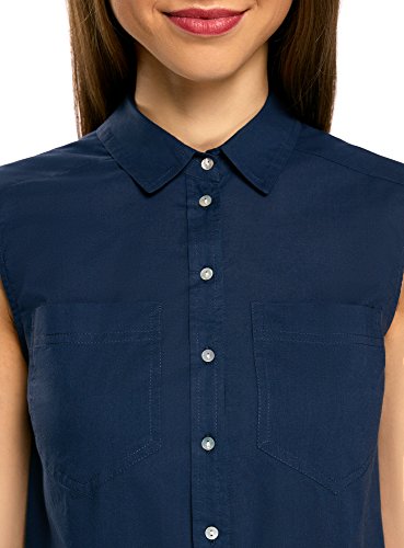 Oodji Ultra Donna Top Basic in Cotone, Blu, XXS