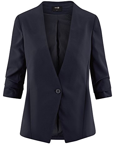 Oodji Ultra Donna Blazer Aderente con Maniche a 3/4, Blu, IT 38 / EU 34 / XXS