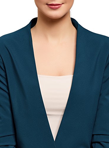 Oodji Ultra Donna Blazer Aderente con Maniche a 3/4, Blu, IT 42 / EU 38 / S