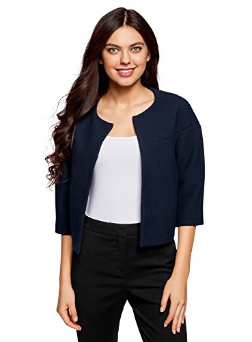 Oodji Ultra Donna Blazer Largo con Gancetti, Blu, IT 42 / EU 38 / S