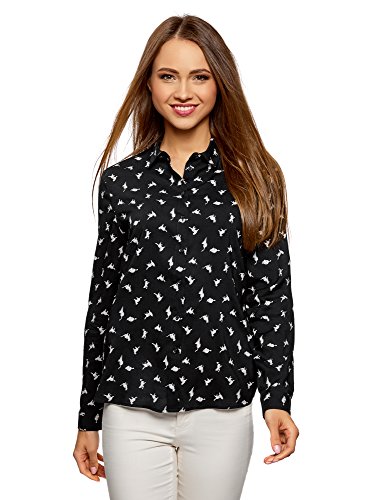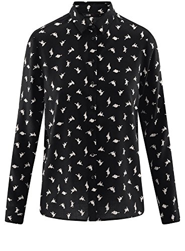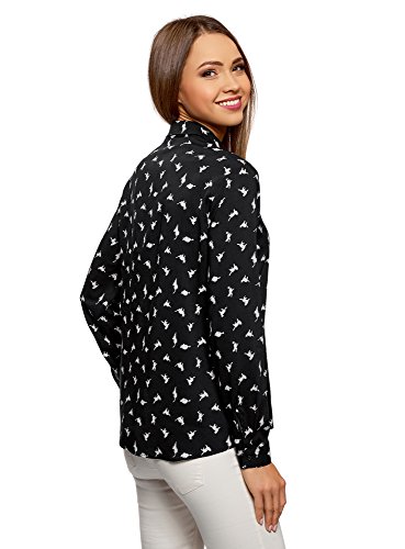 Oodji Ultra Donna Blusa Stampata in Viscosa, Nero, IT 44 / EU 40 / M