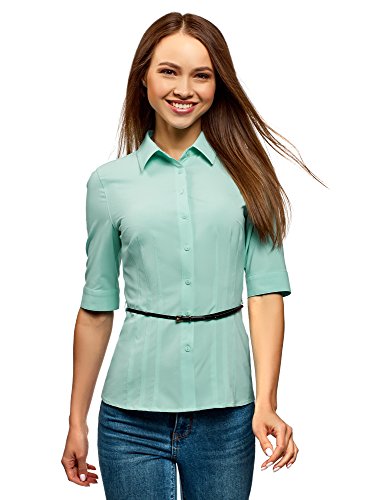 Oodji Ultra Donna Camicetta Aderente con Cintura, Turchese, IT 44 / EU 40 / M