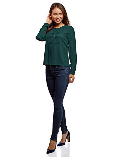 Oodji Ultra Donna Camicetta in Chifon in Stile Militare, Verde, IT 38 / EU 34 / XXS