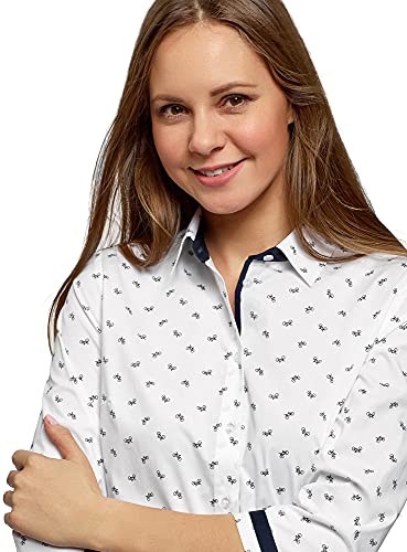 Oodji Ultra Donna Camicetta in Cotone con Maniche a 3/4, Bianco, XXS