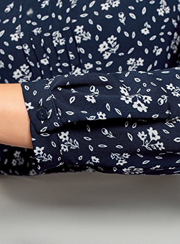 Oodji Ultra Donna Camicetta con Laccetti Decorativi e Increspature sul Collo, Blu, L