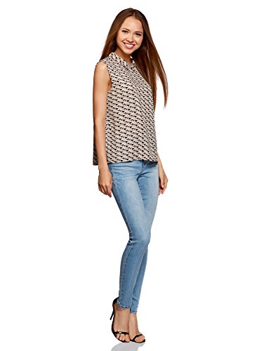Oodji Ultra Donna Camicetta Smanicata con Colletto, Beige, IT 42 / EU 38 / S