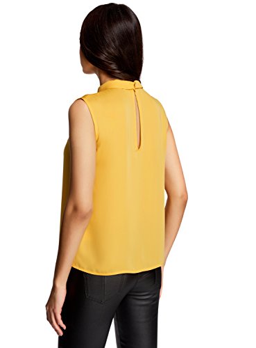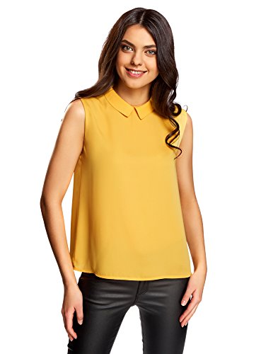 Oodji Ultra Donna Camicetta Smanicata con Colletto, Giallo, IT 42 / EU 38 / S