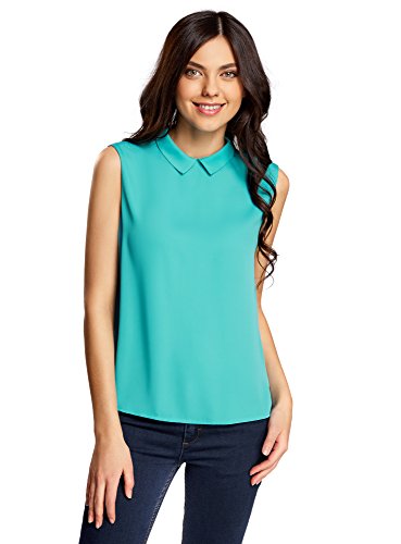Oodji Ultra Donna Camicetta Smanicata con Colletto, Turchese, IT 44 / EU 40 / M