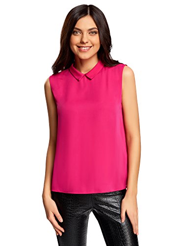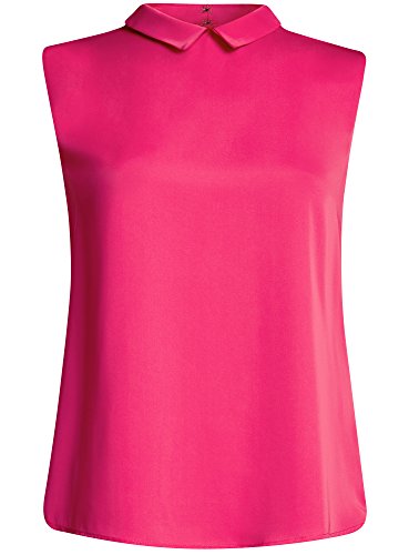 Oodji Ultra Donna Camicetta Smanicata con Colletto, Rosa, IT 44 / EU 40 / M
