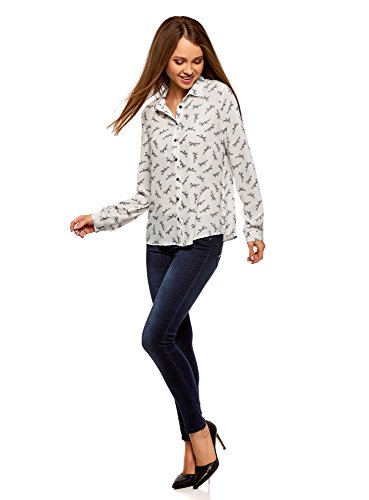 Oodji Ultra Donna Camicetta Stampata in Chiffon, Bianco, IT 38 / EU 34 / XXS