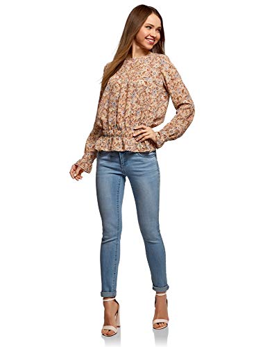 Oodji Ultra Donna Camicetta Stampata con Elastico in Vita, Rosa, S