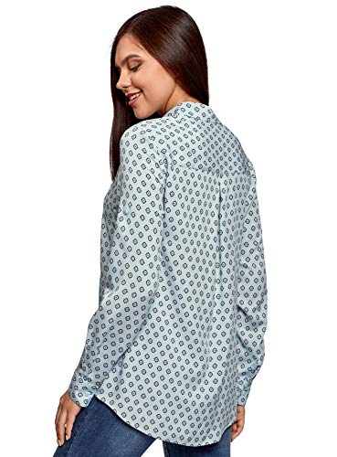Oodji Ultra Donna Camicetta con Taschini e Maniche Regolabili, Blu, IT 38 / EU 34 / XXS