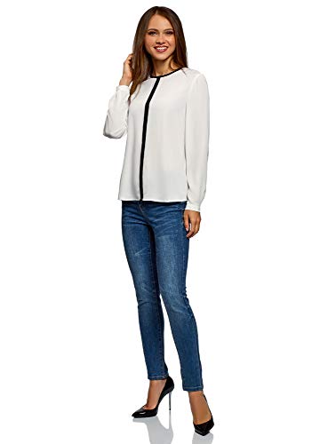 Oodji Ultra Donna Camicetta in Tessuto Fluido con Finiture a Contrasto, Bianco, IT 42 / EU 38 / S