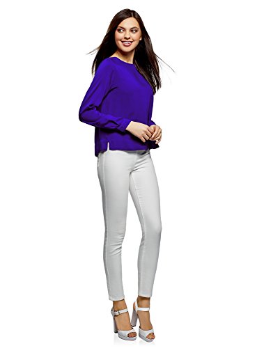 Oodji Ultra Donna Camicetta in Viscosa Basic, Blu, IT 48 / EU 44 / XL