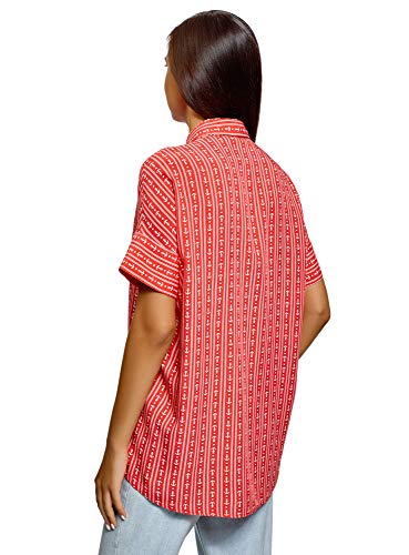 Oodji Ultra Donna Camicetta in Viscosa con Colletto con Fiocco, Rosa, M