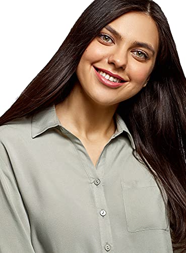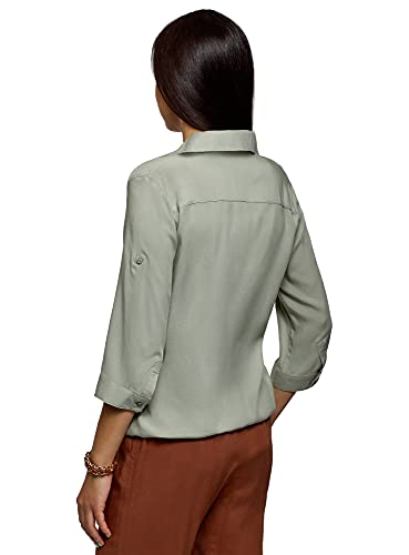 Oodji Ultra Donna Camicetta in Viscosa con Colletto a Punta, Verde, XS