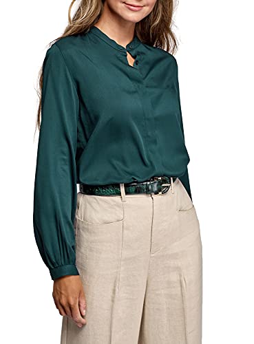 Oodji Ultra Donna Camicetta in Viscosa con Collo alla Coreana, Verde, XXS